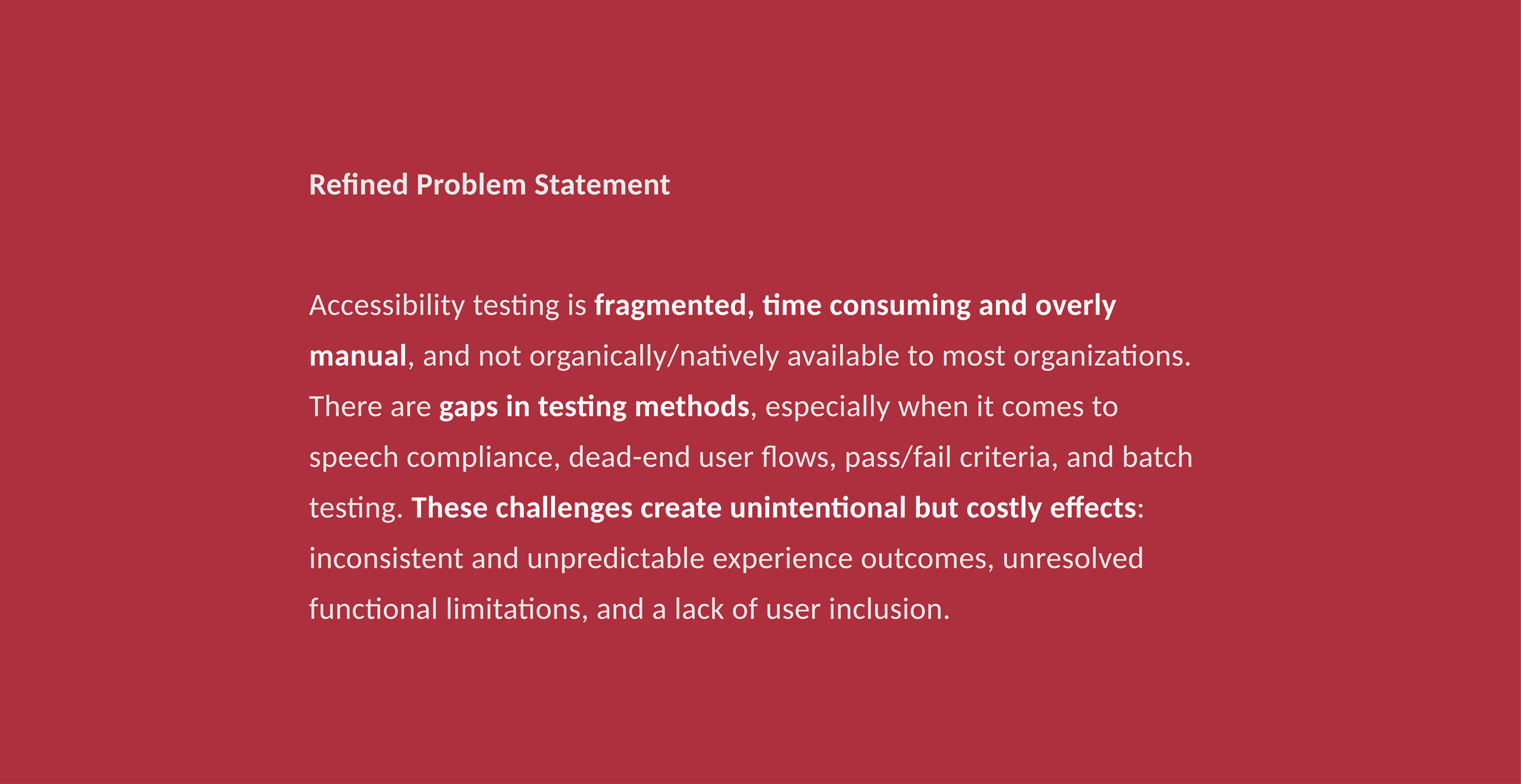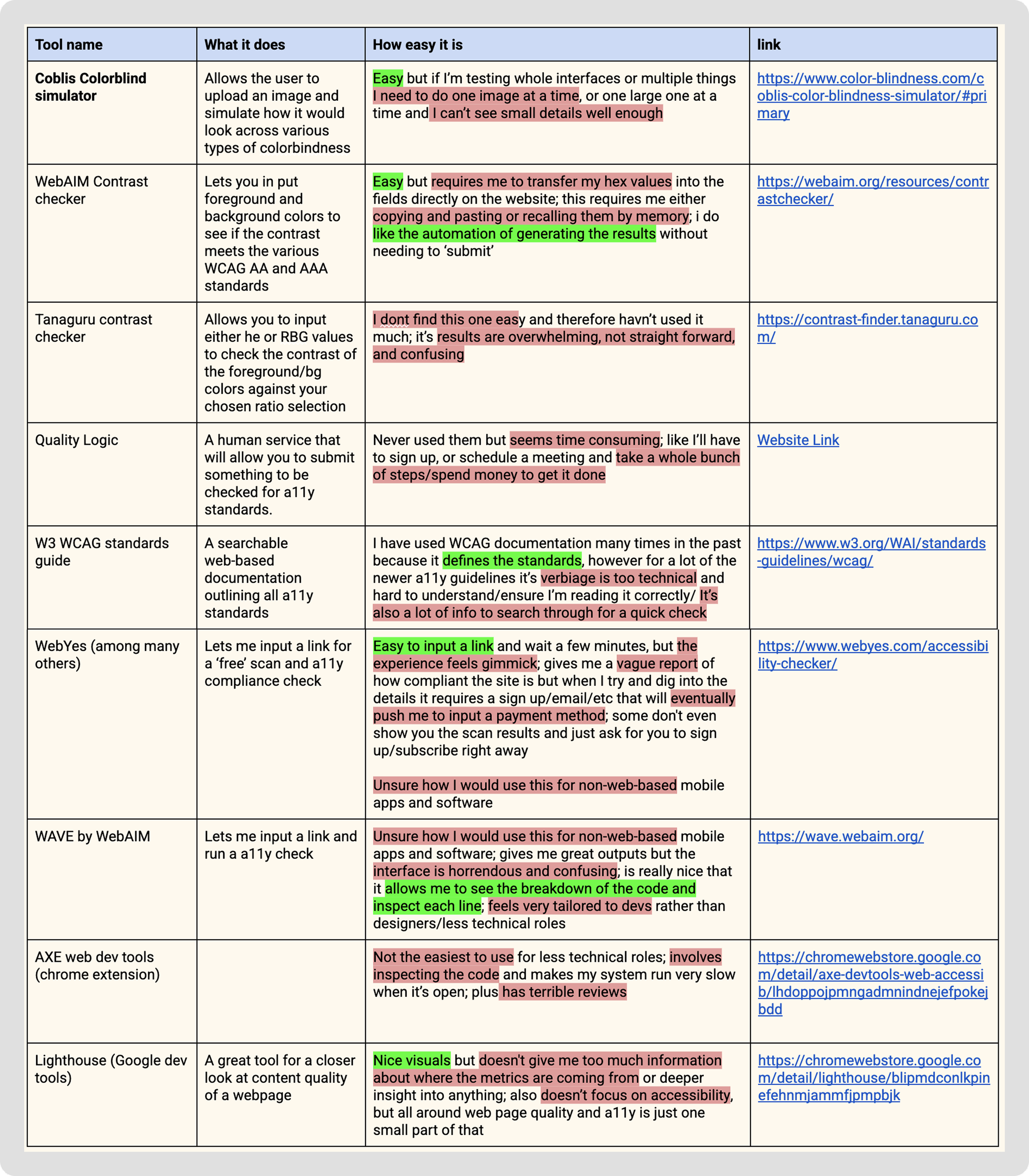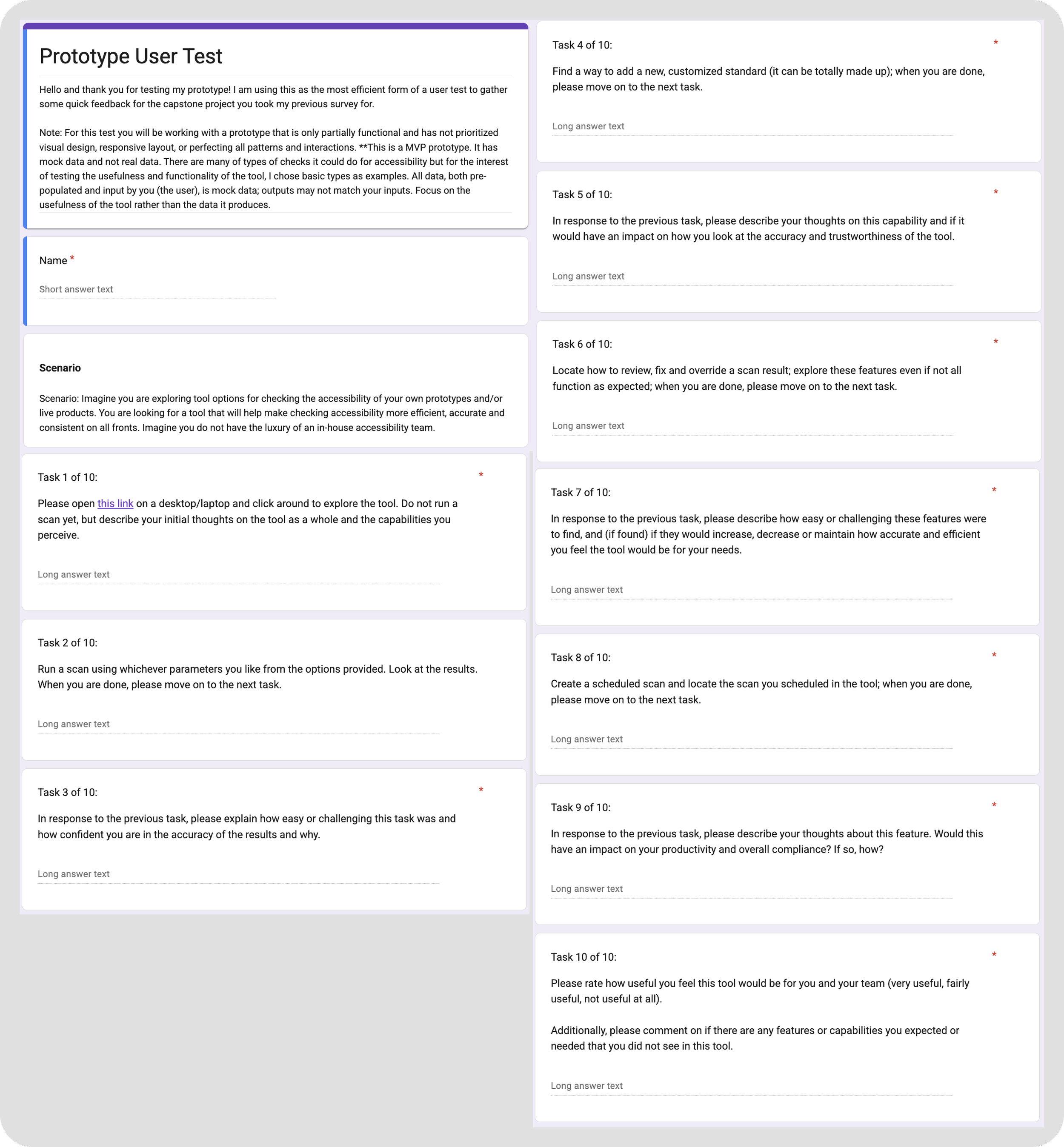 “I’m looking to create an accessibility checker that can be used by designers and non-technical roles that is quick, simple, accurate and reliable and uses WCAG 2.2 accessibility guidelines as the default standards for the tool. I'm going to start with a few basic capabilities to target an MVP version of the tool: